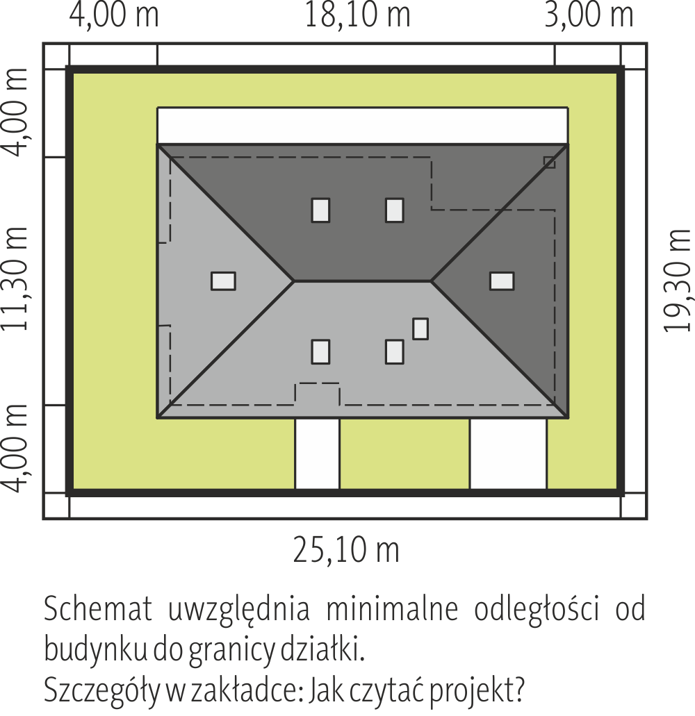 Aspazja 3 jest domem świetnie wpisującym się w niewielką działkę. Jest stworzony dla rodziny 4-5 osobowej z upodobaniem do rozwiązań prostych i nowoczesnych. Dom generalnie dzieli się na 2 części – dzienną oraz nocną. Ta pierwsza to salon z jadalnią i otwarta na nie kuchnia ze spiżarnią. Zwolennicy kuchni zamkniętych mają możliwość rozdzielenia jej od pozostałej powierzchni ścianką działową. W zacisznej tylnej części budynku zaprojektowano pokój z sąsiadującą z nim łazienką z natryskiem. Dzięki temu bardzo dobrze spełni rolę pokoju gościnnego, kolejnej sypialni, czy pokoju hobby. Druga część budynku to strefa nocna. Mieści się ona na poddaszu domu. Składa się z trzech sypialni oraz łazienki z praktycznie wydzielonym aneksem na pralnię/suszarnię.