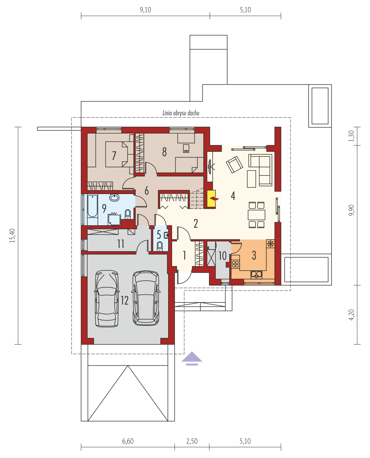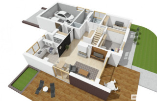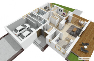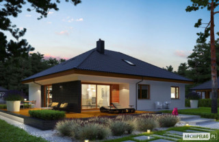Charakterystyka: Dom parterowy z poddaszem do adaptacji, niepodpiwniczony, z garażem dwustanowiskowymPrzeznaczenie: Dom dla 2-3-osobowej rodziny Technologia i konstrukcja:Fundamenty: ławy, bloczki betonowe 24 cm, ocieplenie styropian 15 cmŚciany zewnętrzne: murowane, dwuwarstwowe, bloczki betonu komórkowego firmy H+H 24 cm, ocieplenie 20 cmŚciany wewnętrzne: murowane, bloczki betonu komórkowego firmy H+H, ściany nośne 24 cm, ścianki działowe 11,5 cmPodłoga na gruncie: płyta betonowa, ocieplenie styropian 15 cmStrop: strop gęstożebrowy Teriva, ocieplenie wełna mineralna 30 cmDach: konstrukcja drewniana, dachówka ceramiczna płaska Bergamo firmy Röben, w przypadku wykorzystania poddasza jako mieszkalne – ocieplenie dachu: wełna mineralna 30 cm, więźba dachowa dostępna również w systemie prefabrykacji drewnianejInne: schody wewnętrzne drewniane Rozwiązania instalacje:Ogrzewanie: kocioł gazowy, rozprowadzenie ciepła: grzejnikiWentylacja: grawitacyjna Wykończenie:Elewacje: tynk cienkowarstwowy mineralny, okładzina klinkierowa Röben i okładzina z płyty HPL z naturalną okleiną drewnianą firmy ProdemaStolarka: drewniana, PVC lub aluminiowa, drzwi wejściowe i brama garażowa firmy HörmannOkna połaciowe: w przypadku wykorzystania poddasza jako mieszkalne – rozwiązania technologiczne firmy FAKRO, wyłaz dachowy FAKRO Otoczenie: system tarasowy ProDeck - deska kompozytowa Terra w kolorze złoty dąbWersje - zapytaj o dostępność:- Astrid (mała) II G1 – inny układ pomieszczeń w strefie wejściowej i w obrębie klatki schodowej, z garażem jednostanowiskowym - Astrid (mała) G1 – dom z poddaszem do adaptacji, podobna powierzchnia użytkowa, podobny układ funkcjonalny, dach o kącie nachylenia 30°, węższy budynek, z garażem jednostanowiskowym - Astrid (mała) G2 – dom z poddaszem użytkowym, większa powierzchnia użytkowa, podobny układ funkcjonalny parteru, dach o kącie nachylenia 35°, z garażem dwustanowiskowym - Astrid – dom z poddaszem do adaptacji, większa powierzchnia użytkowa, podobny układ funkcjonalny, dach o kącie nachylenia 30°, szerszy budynek, z garażem jedno- i dwustanowiskowym - Astrid II – dom z poddaszem użytkowym, większa powierzchnia użytkowa, podobny układ funkcjonalny parteru, dach o kącie nachylenia 35°, szerszy budynek, z garażem jedno- i dwustanowiskowym- Astrid III – dom z poddaszem użytkowym, większa powierzchnia użytkowa, podobny układ funkcjonalny parteru, dach o kącie nachylenia 35°, szerszy budynek, z garażem jedno- i dwustanowiskowym Warianty z instalacjami energooszczędnymi: pompą ciepła, wentylacją mechaniczną, systemem solarnym i ogrzewaniem podłogowym:- Astrid (mała) II ENERGO PLUS – taki sam układ funkcjonalny, z garażem jedno- i dwustanowiskowym- Astrid III ENERGO PLUS – dom z poddaszem użytkowym, większa powierzchnia użytkowa, podobny układ funkcjonalny parteru, dach o kącie nachylenia 35°, szerszy budynek, z garażem jedno- i dwustanowiskowym - Każda wersja z inną propozycją wykończenia elewacji - Odbicie lustrzane do każdej wersjiIstnieje techniczna możliwość:- podpiwniczenia budynku- wykonania budynku w technologii szkieletowej Atuty projektu okiem architekta:- Delikatnie rozrzeźbiona bryła budynku z eleganckim klinkierowym i drewnianym wykończeniem elewacji- Strefa wejściowa zapewniająca ochronę przed niesprzyjającymi warunkami atmosferycznymi- Możliwość wykorzystania poddasza na część mieszkalną- Funkcjonalne i ergonomiczne wnętrze z podziałem na strefę dzienną oraz nocną- Funkcjonalne szafy wnękowe w wiatrołapie i holu- Praktyczne pomieszczenie gospodarcze przy kuchni- Przytulna strefa wypoczynkowa zorganizowana na tarasie ogrodowym dostępnym z salonu i jadalni- Duża kotłownia umożliwiająca zastosowanie dowolnego źródła ogrzewania- Garaż oddzielony termicznie od ogrzewanej części budynku