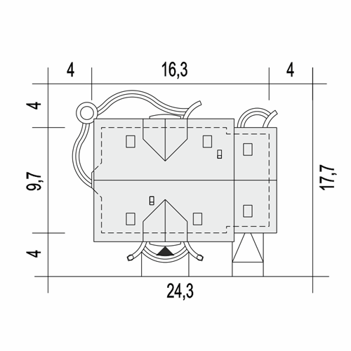 Dom z użytkowym poddaszem, przeznaczony dla 4-6-osobowej rodziny. Na parterze znajduje się pokój dzienny, tworzący wraz z jadalnią i kuchnią otwartą przestrzeń. Program funkcjonalny mieszkalnej części parteru dopełniają gabinet, łazienka oraz spiżarnia. Na poddaszu znajdują się trzy pokoje oraz dwie łazienki, z których jedna obsługuje tylko sypialnię rodziców. Projekt dostępny w wersji z garażem jednostanowiskowym - Atlantyda oraz z garażem dwustanowiskowym - Atlantyda II. Projekt może być wykorzystany do zabudowy bliźniaczej.