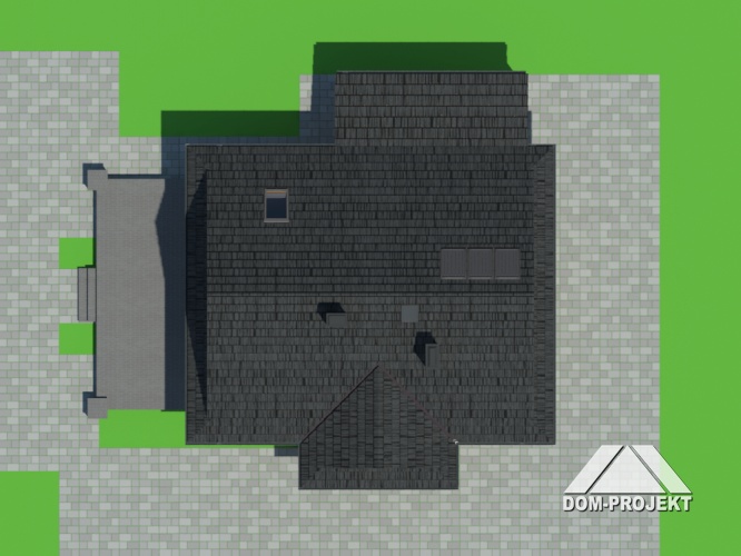 Mały jednorodzinny dom parterowy, niepodpiwniczony. Pomimo niewielkiego metrażu zawiera w sobie optymalny program pomieszczeń dla 2-3 osobowej rodziny. Usytuowanie salonu od strony wejścia oraz narożne przeszklenie daje uczucie otwartości domu. Przed wejściem zaprojektowano częściowo zadaszony taras. Ściany: 2-warstwowe - pustak ceramiczny + styropian, Stropy: z wiązarów dachowych firmy MITEK, Dach: dachówka, kąt nachylenia 30°
