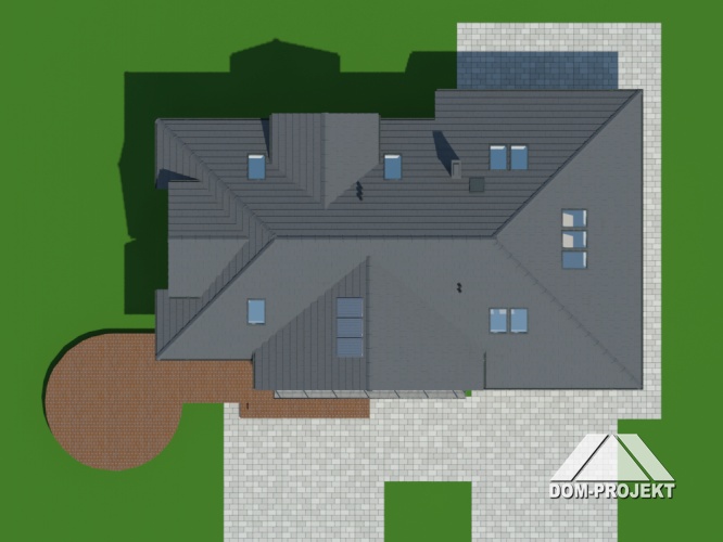 Parterowy dom jednorodzinny. Przy niewielkim metrażu zapewnia pełen komfort dla 4-osobowej rodziny. Przestronna część dzienna z szeregiem przeszkleń umożliwia kontakt z otaczającą zielenią. Funkcjonalny układ pomieszczeń z wyraźnym podziałem na część dzienną i nocną, przy zachowaniu minimum komunikacji. Wygodne, częściowo zadaszone tarasy.Ściany: 2-warstwowe - pustak ceramiczny + wełna mineralna ISOVER, Stropy: żelbetowe, wylewane, Dach: dachówka, kąt nachylenia 27°