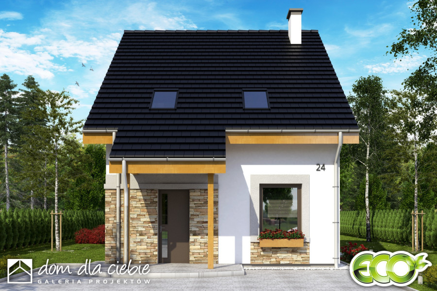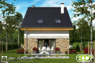 Projekt Azalia bez garażu, to propozycja domu o prostej formie i konstrukcji co gwarantuje niski koszt jego budowy. Dzięki ciepłym barwom, projekt Azalia prezentuje się wyjątkowo atrakcyjnie, wyróżniając się kontrastowym zestawieniem kolorów. Funkcja budynku obejmuje dwie strefy: ogólnodostępną i prywatną. Na parterze mamy przewidziany wiatrołap, hol, spiżarnię, pokój/gabinet, kotłownię, WC, kuchnię z małą jadalnią i salon z kominkiem. Na poddasze prowadzą drewniane schody. Przewidujemy tu wygodny przedpokój, wspólną obszerną łazienkę, 3 sypialnie w tym jedną z garderobą.