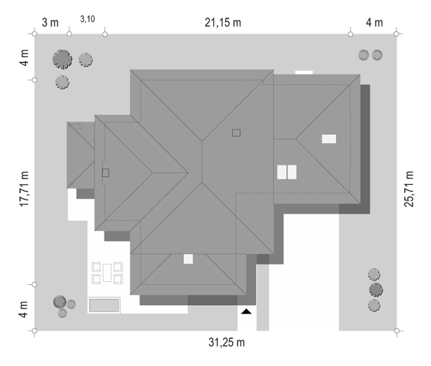 Azuryt jest projektem energooszczędnym, skrojonym na miarę potrzeb 4-osobowej rodziny. Charakteryzuje się prostą bryłą przykrytą dwuspadowym dachem. Stanowi umiejętne połączeniem tradycyjnej bryły z nowoczesną stylistyką. Do budynku przylega jednostanowiskowy garaż ze sporą kotłownią, posiadającą wejście od strony elewacji ogrodowej. Przestrzeń parteru wypełnia salon połączony z aneksem kuchennym - tworząc spójną całość. Dodatkowo na parterze znajduje się pokój/gabinet. Na poddaszu zaprojektowano trzy sypialnie oraz łazienkę. Projekt Azuryt posiada trzy wersje zagospodarowania przestrzeni nad garażem.Ściany: 2-warstwowe - beton komórkowy SOLBET 24 cm + styropian, Stropy: żelbetowe, wylewane, Dach: dachówka ceramiczna, kąt nachylenia 45°