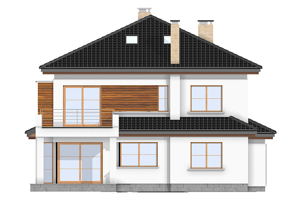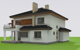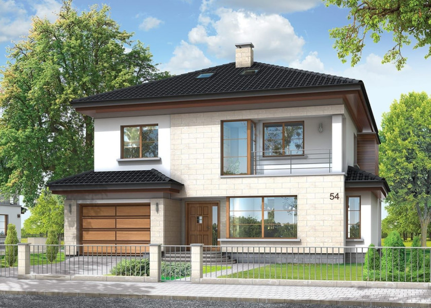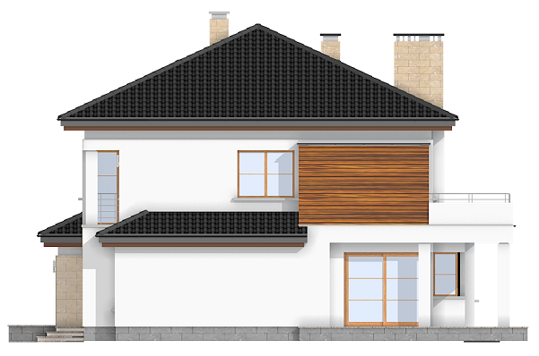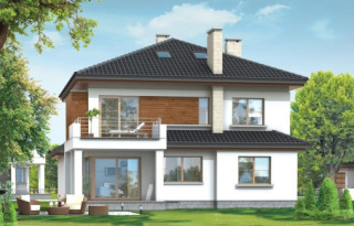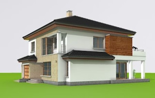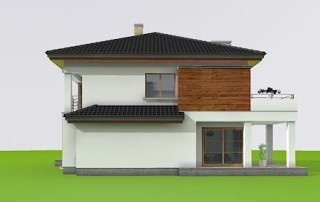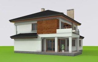 Dzięki temu projektowi dowiedziałem się, ze te belki nad tarasem to się nazywa pergola :P a tak na poważnie, bardzo ładny projekt, fajnie przemyślany środek, zwłaszcza parter. W dodatku ma kominek w salonie i garaż też jest bardzo przydatny.