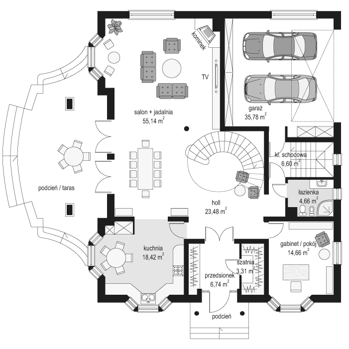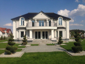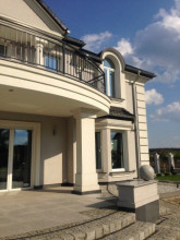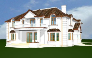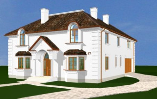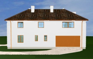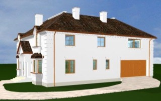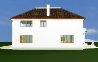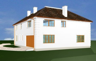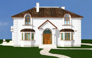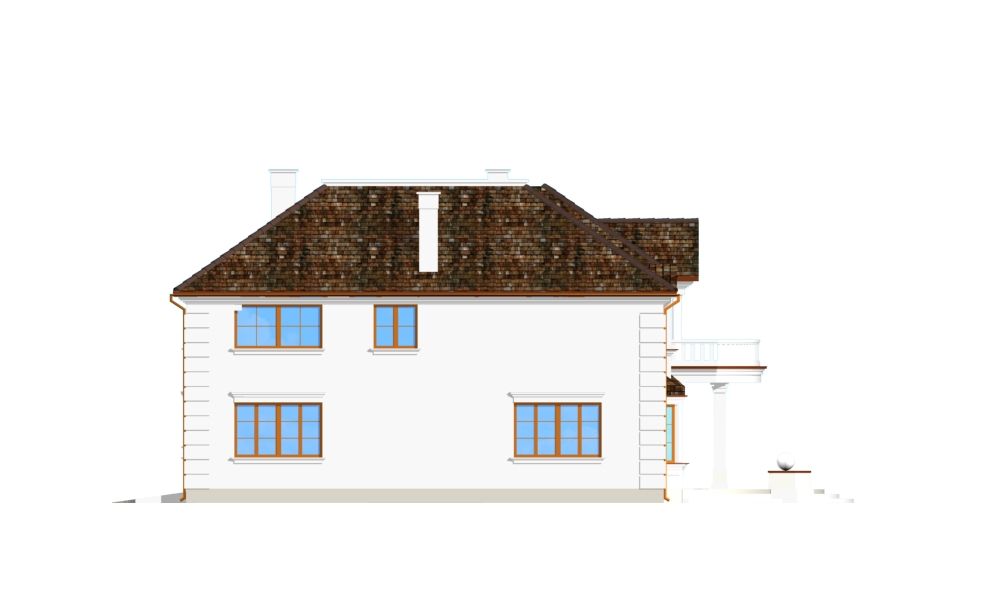 Projekt domu Ambasador 2 to reprezentacyjny, duży dom, na działkę z ogrodem usytuowanym po bocznej stronie. Elewację frontową domu zaprojektowano jako symetryczną, z wykuszami po bokach i ciekawym portykiem wejściowym. W projekcie Ambasador 2 garaż został umieszczony w tylnej części domu, aby nie zaburzać willowego nastroju wrotami garażowymi lub stojącymi na podjeździe autami. Elewacja ogrodowa budynku ozdobiona została wykuszami oraz eleganckim tarasem z tralkami na piętrze, tworzącym jednocześnie duży podcień dostępny z salonu na parterze. Wnętrze domu to duże pomieszczenia, dodatkowo łączące się przestrzennie, hol z klasycznymi zabiegowymi schodami, czy wysoki hol-galeria na piętrze ze świetlikami w dachu. Zaprojektowana w ten sposób przestrzeń tworzy eleganckie, komfortowe miejsce do życia. Dom Ambasador 2 posiada częściowe podpiwniczenie. Zapraszamy do zapoznania się z pełną ofertą pracowni MG Projekt: Dostępna jest również wersja odbicia lustrzanego projektu Ambasador 2 oraz wersja mniejsza o 48 m2 projekt domu Ambasador 3 wersja podstawowa projekt domu Ambasador