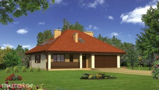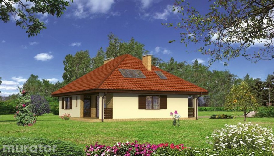 Parter domu Barwnego wariant I został podzielony na dwie części. W skrzydle po prawej stronie umieszczono garaż z miejscem dla dwóch aut. Tuż obok niego znalazła się kotłownia. Sąsiedztwo tych dwóch powierzchni będzie stanowiło również idealny magazyn dla wszelkiego rodzaju maszyn oraz narzędzi ogrodowych. Od strony ogrodu zaprojektowano także sypialnię. Będzie to idealne miejsce do przenocowania gości. Posiada ona prywatną łazienkę, co dodatkowo zwiększy komfort jej użytkowania. W przeciwległym skrzydle znalazł się salon wraz z kuchnią i jadalnią. Wszystkie te płaszczyzny będą niezwykle przyjazne dla wszystkich domowników i umożliwić im swobodne spędzanie czasu w rodzinnym gronie. W cieplejsze miesiące, domownicy będą mogli się przenieść na prostokątny taras, który jest także nieco ba