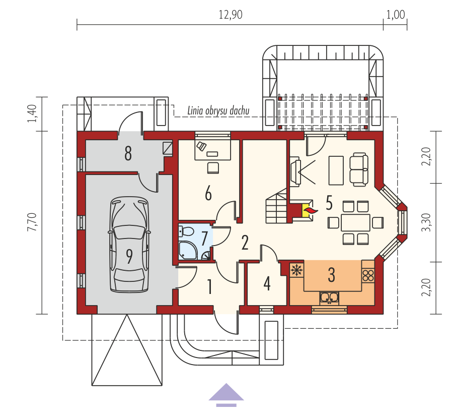 Charakterystyka: Dom parterowy z poddaszem użytkowym, niepodpiwniczony, z garażem jednostanowiskowym Przeznaczenie: Dom dla 3-4 osobowej rodzinyTechnologia i konstrukcja: Ściany zewnętrzne: murowane, Strop: gęstożebrowy Dach: konstrukcja drewniana, dachówka płaska lub inna o podobnych parametrach Inne: schody wewnętrzne drewnianeRozwiązania instalacyjne: Ogrzewanie: kocioł gazowy, rozprowadzenie ciepła: grzejniki Wentylacja: grawitacyjna Wykończenie: Elewacje: tynk mineralny i okładzina klinkierowa Stolarka: drewniana lub PCV. Rolety zewnętrzne w systemie CleverBox firmy BeClever.Wersje - zapytaj o dostępność: - Ben G1 (z piwnicą) – wersja projektu z piwnicą - Ben II G1 – wersja większa projektu - Ben II G1 (z piwnicą) – większa wersja projektu z piwnicą