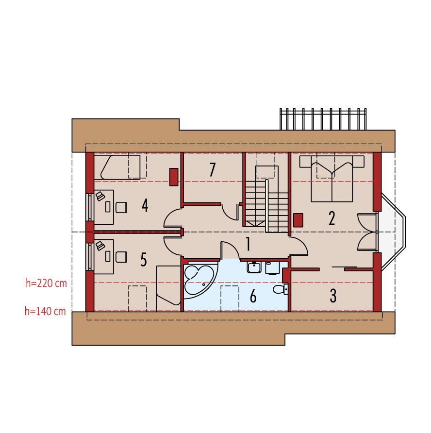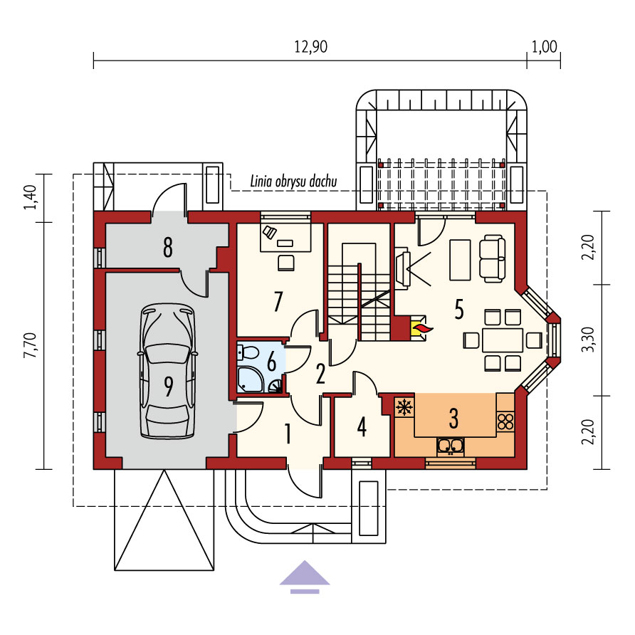 Charakterystyka: Dom parterowy z poddaszem użytkowym, podpiwniczony, z garażem jednostanowiskowym Przeznaczenie: Dom dla 3-4 osobowej rodzinyTechnologia i konstrukcja: Ściany zewnętrzne: murowane, Strop: gęstożebrowy Dach: konstrukcja drewniana, dachówka płaska lub inna o podobnych parametrach Inne: schody wewnętrzne: do podpiwniczenia – żelbetowe, na poddasze – drewniane. Rozwiązania instalacyjne: Ogrzewanie: kocioł gazowy, rozprowadzenie ciepła: grzejniki Wentylacja: grawitacyjna Wykończenie: Elewacje: tynk mineralny i cegła klinkierowa Stolarka: drewniana lub PCV. Rolety zewnętrzne w systemie CleverBox firmy BeClever.Wersje - zapytaj o dostępność: - Ben G1 – wersja projektu bez piwnicy - Ben II G1 – wersja większa projektu - Ben II G1 (z piwnicą) – większa wersja projektu z piwnicą