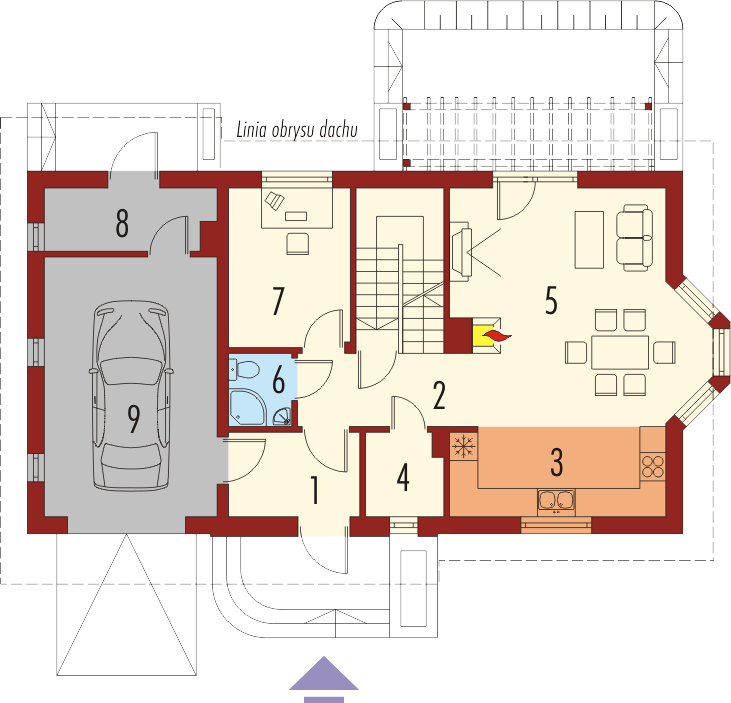 Charakterystyka: Dom parterowy z poddaszem użytkowym, podpiwniczony, z garażem jednostanowiskowym Przeznaczenie: Dom dla 3-4 osobowej rodzinyTechnologia i konstrukcja: Ściany zewnętrzne: murowane, Strop: gęstożebrowy Dach: konstrukcja drewniana, dachówka ceramiczna firmy Röben Inne: schody wewnętrzne: do podpiwniczenia – żelbetowe, na poddasze – drewniane. Rozwiązania instalacyjne: Ogrzewanie: kocioł gazowy, rozprowadzenie ciepła: grzejniki Wentylacja: grawitacyjna Wykończenie: Elewacje: tynk mineralny i cegła klinkierowa Stolarka: drewniana lub PCV. Rolety zewnętrzne w systemie CleverBox firmy BeClever.Wersje - zapytaj o dostępność: - Ben II G1 - wersja projektu bez piwnicy - Ben G1 - mniejsza wersja projektu bez piwnicy - Ben G1 (z piwnicą) - mniejsza wersja projektu z piwnicą