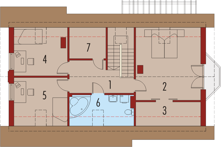 Uważam, że nie ma dobrego projektu bez schowków i przynajmniej jednej garderoby. Na poddaszu są dwie, do tego spiżarka i pomieszczenie za garażem, naprawdę nie można narzekać, a dom należy raczej do tych mniejszych. Osobna sprawa to piwnica – widzę, że niektóre projekty na archido je mają, a myślałem że to już przezytek. Na szczęście znalazłem dom, który podoba się rodzinie i wygląda na bardzo funkcjonalny.