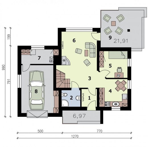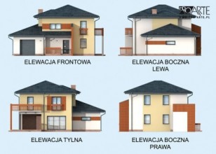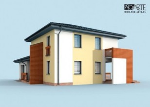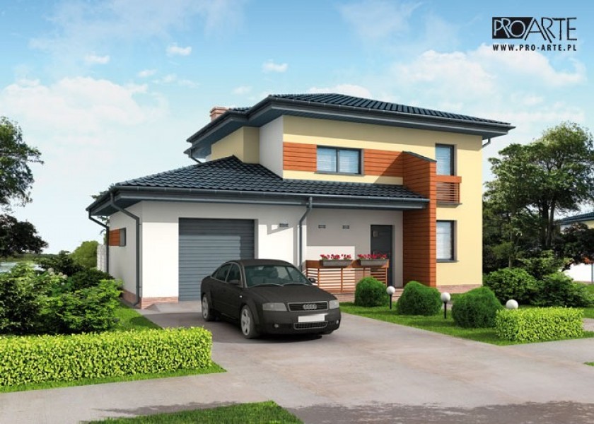 Bermejo - dom jednorodzinny Nowoczesny, funkcjonalny - tak można w skrócie opisać Bermejo. Forma architektoniczna ma odpowiadać funkcji, jaką ma spełniać ten dom - ma służyć do mieszkania. Bryła budynku upiększona gustownym odeskowaniem oraz pięknie wpisanymi przyporami przy werandzie i pod balkonami, to mocne punkty estetyki tego domu. Nieskomplikowane płaszczyzny elewacji, balkony i prostokątne otwory okienne podkreślają bryłę domu. W Bermejo wszystko tworzy niezachwianą i zrównoważoną całość. Jego dopełnieniem jest dwustanowiskowy garaż. Weranda prowadząca do wnętrza domu upiększona jest przyporą, chroniącą przed wiatrem i mocnym słońcem. Wiatrołap z wkomponowanym w nim miejscem na garderobę usytuowany jest od południa. Za jego ścianą znajduje się mała łazienka. Na wpro