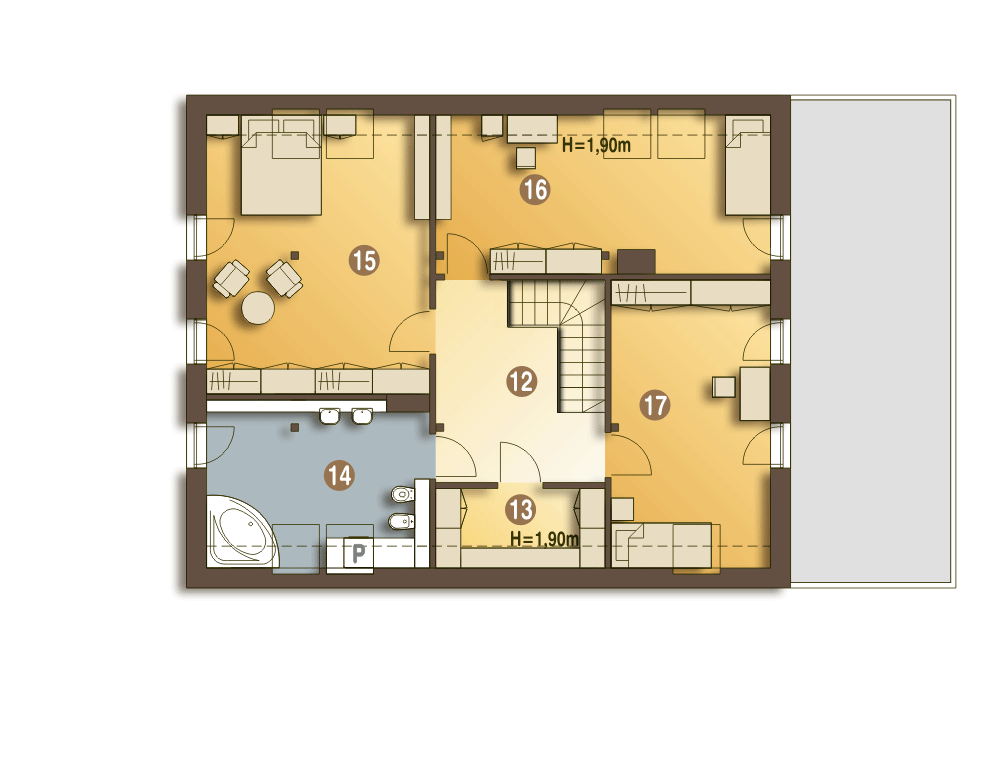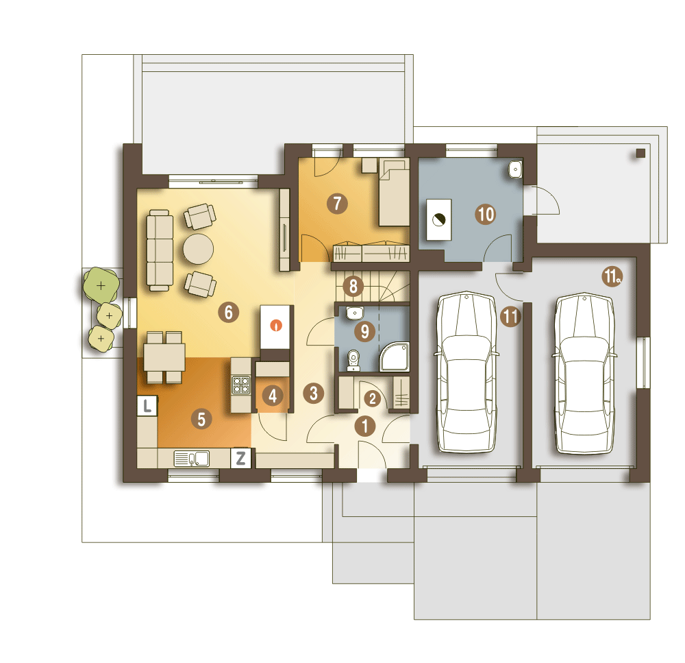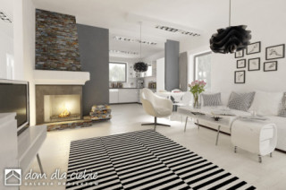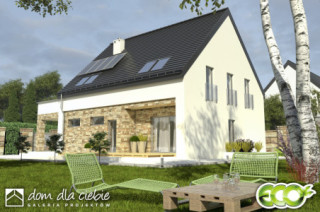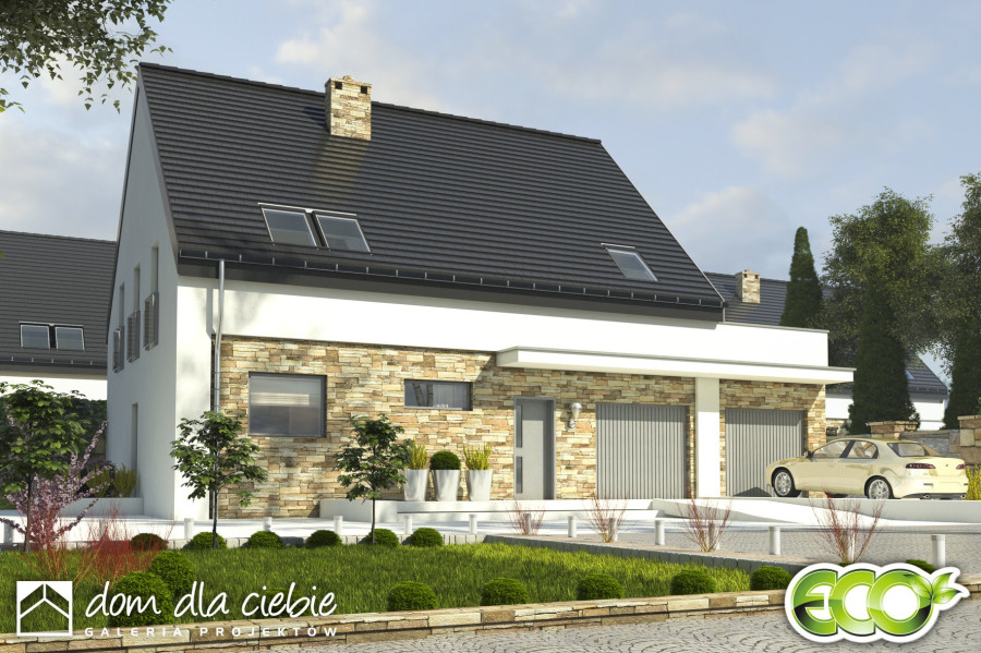 Bernikla II to projekt domu jednorodzinnego zaprojektowany dla 4-5 osobowej rodziny. Projekt tego nowoczesnego w swojej formie domu posiada na parterze obszerny salon z kominkiem, kuchnię ze spiżarnią, dużą łazienkę oraz wygodny gabinet. W części wejściowej zaprojektowano dużą garderobę dostępna z wiatrołapu. Z salonu można wyjąć na duży zadaszony taras. Zadaszenie uzyskano poprzez wycofanie ściany zewnętrznej i wykonanie podcienia. Parter budynku zawiera w sobie również część techniczną i dwa garaże. Na piętrze znajduje się strefa nocna dla rodziny. Projekt tego domu posiada na piętrze trzy duże sypialnie sypialnie, łazienkę i wielką garderobę. Forma domu jest bardzo prosta, z przemyślana funkcją co pozwala na obniżenia kosztów budowy i późniejszej eksploatacji.