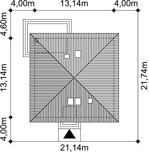 Bez DR-T to projekt popularnego domu z poddaszem, dostosowany do technologii szkieletowej. Optymalne wykorzystanie przestrzeni zapewnia wygodne warunki mieszkaniowe dla 4 osobowej rodziny. Dzięki niewielkim rozmiarom i przyjętym rozwiązaniom projektowym budynek jest ekonomiczny w budowie i użytkowaniu. Na poddaszu znajduje się strefa prywatna, podczas gdy parter przeznaczono na strefę dzienną Walory użytkowe kuchni podnosi spiżarnia.Ściany: drewniane, szkieletowe, Stropy: drewniane, Dach: dachówka ceramiczna, kąt nachylenia 45°