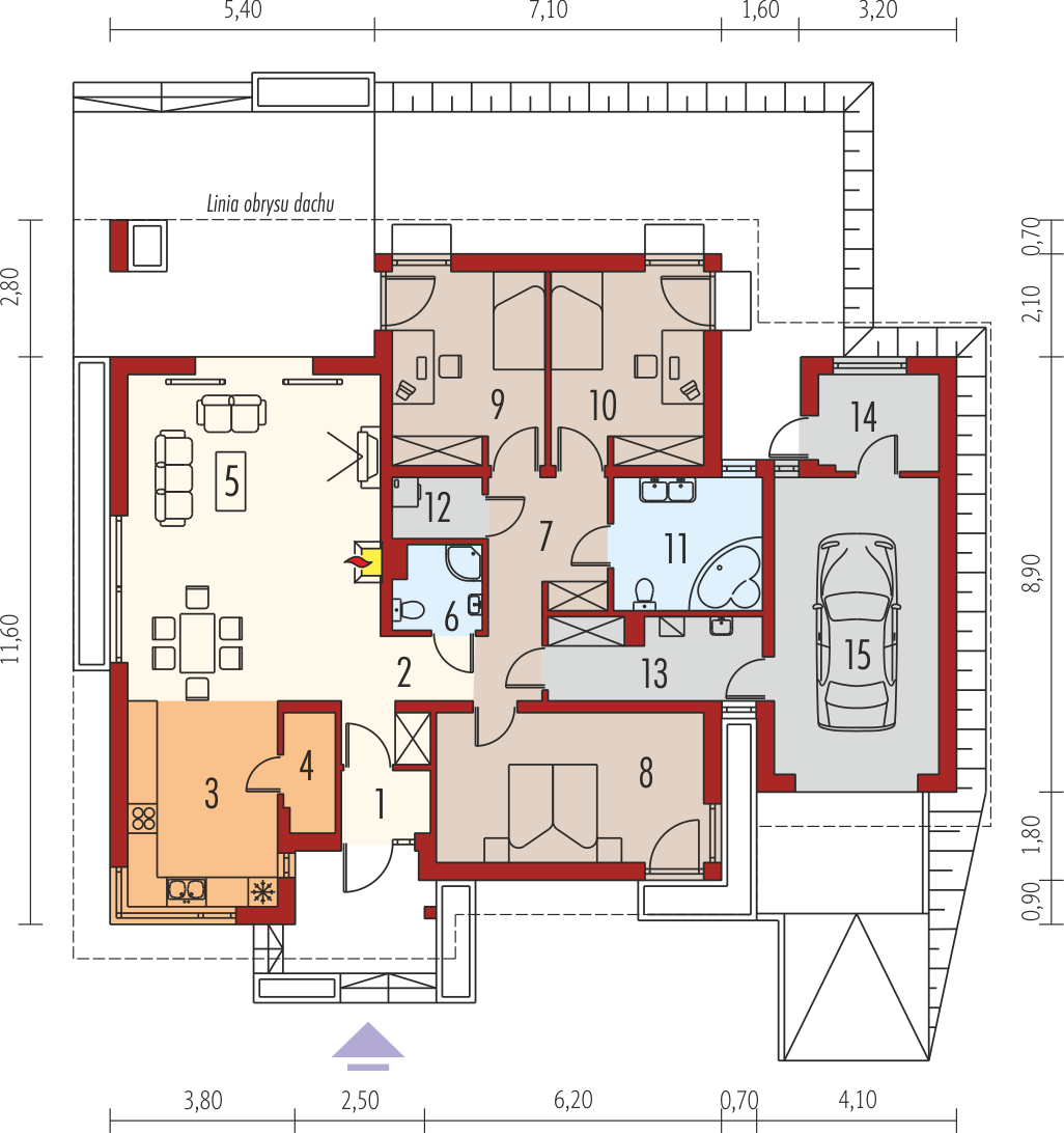 Skomplikowany układ na pierwszy rzut oka… ale jak chwilę popatrzyłem na plan, to jestem zdecydowanie na tak! Projekt archido.pl przynajmniej 9/10 świetny funkcjonalny układ. Przy jednym poziomie dzielenie na część dzienną i sypialną to najlepsze wyjście!