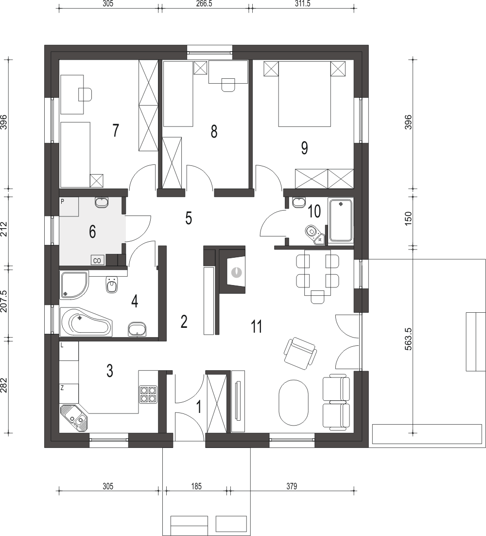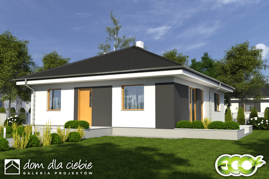 Projekt Bogna to wygodny parterowy dom dla 4-osobowej rodziny.fundamenty: BETONOWE ściany zewnętrzne: POROTHERM+STYROPIAN TERMO ORGANIKA rodzaj stropu i konstrukcja dachu: wiązary prefabrykowane MITEK elewacje: TYNK STRUKTURALNY pokrycie dachu: DACHÓWKA CERAMICZNA