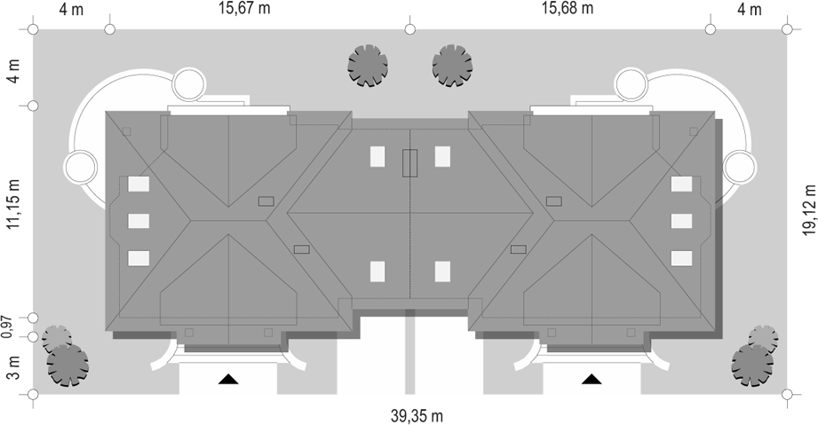 Architektura tego niewielkiego domu jest <b>nowoczesną wersją tradycyjnych form i proporcji</b>. Prostą, opartą na planie wydłużonego prostokąta bryłę wzbogacono wysuniętym przed frontowa ścianę prostopadłościanem, kryjącym jednostanowiskowy garaż. Nowoczesny wizerunek elewacji buduje modna kompozycja kolorystyczna: tynk w dwóch odcieniach szarości zestawiony ze stolarką i bramą garażową w kolorze jasnego naturalnego drewna. Połacie dwuspadowego zwróconego szczytem do ulicy dachu wykończono dachówka ceramiczną w modnym grafitowym kolorze. Ze względu na wypełniający sporą część frontowej części parteru garaż wejście do domu usytuowano na bocznej elewacji. Takie rozwiązanie ma swoje konsekwencje w funkcjonalności wnętrza: gdy wnętrze oparte jest na planie wydłużonego prostokąt