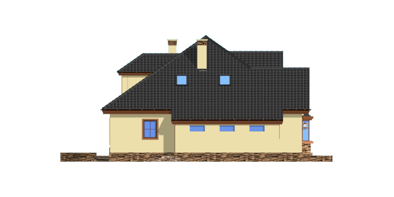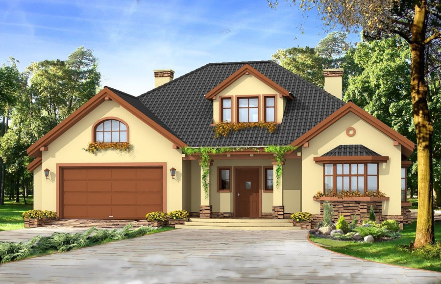 Projekt domu Zacisze 2 to budynek jednorodzinny dla rodziny pięcioosobowej. Zacisze 2 to dom o atrakcyjnej, rozłożystej bryle z łagodnym wielospadowym dachem, w który wkomponowano duże lukarny. Obszerny podcień frontowy i zadaszony taras z kominkiem. Od strony ogrodu chronią przed deszczem lub zbyt ostrym słońcem. W kuchni i jadalni zaprojektowano wykusze, kolumny i drewniane belkowania - nadają one architekturze przysadzisty, stateczny charakter. Atutem domu Zacisze 2 jest duża jadalnia z wyjściem na ogród oraz garaż z dodatkową przestrzenią z boku. Pracownia posiada wersję projektu domu Zacisze 2 w odbiciu lustrzanym oraz inne wersje: projekt domu Zacisze, projekt domu Zacisze 3. Zapraszamy!