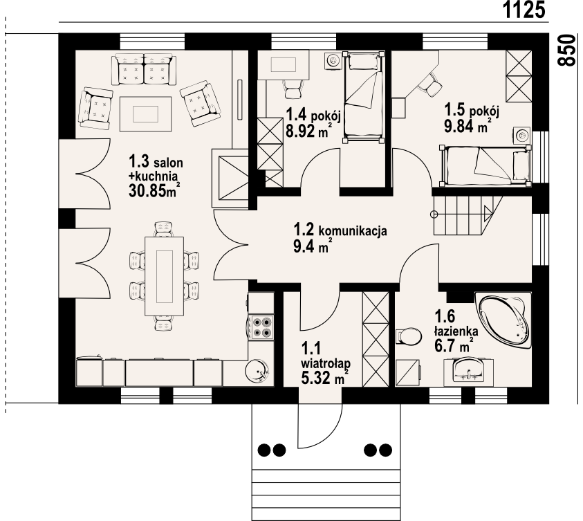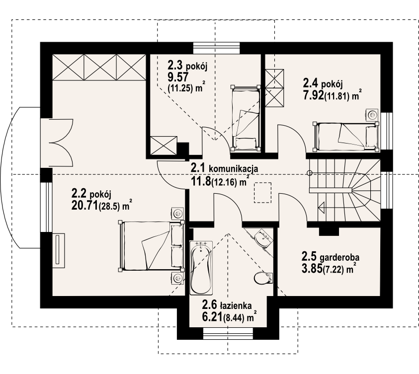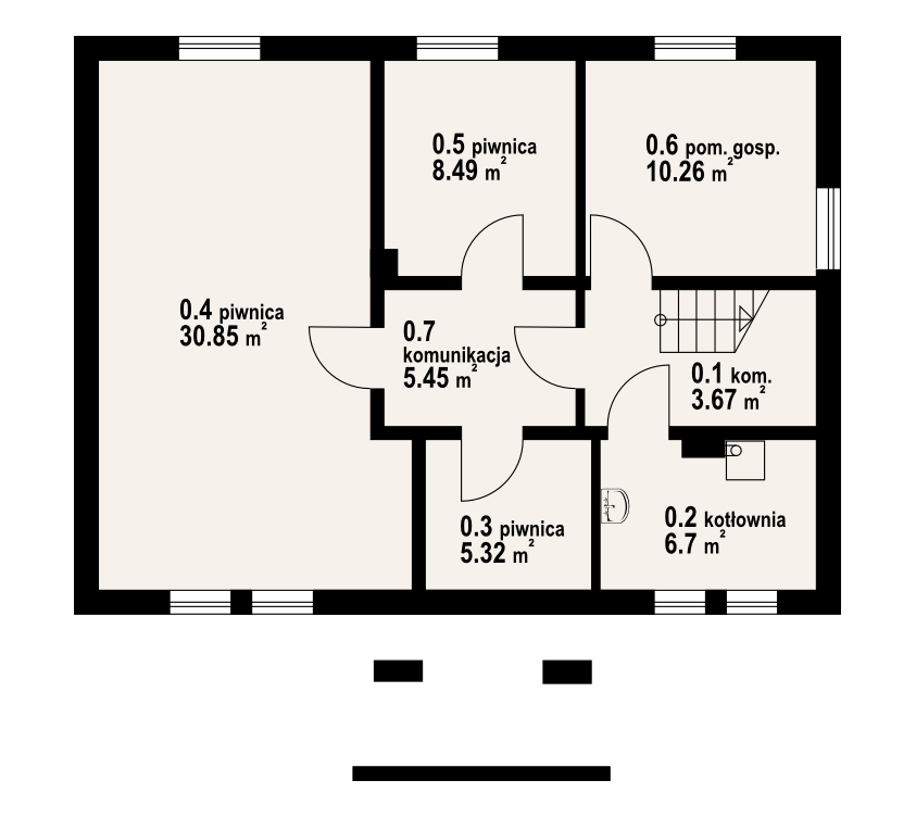Dom całkowicie podpiwniczony. Bogata funkcja pomieszczeń. Salon i dwa pokoje na parterze. W salonie kominek z możliwością rozprowadzenia ciepła. Trzy sypialnie, łazienka i garderoba na poddaszu. W piwnicach zaplecze gospodarcze.