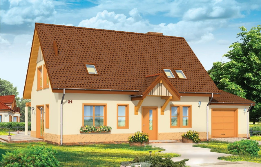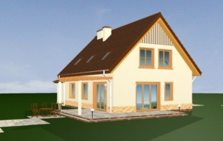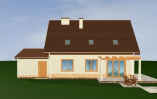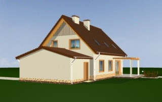 Projekt domu Leśny Zakątek 2 to wariantowa wersja popularnego projektu domu Leśny Zakątek. Budynek zyskał nową szatę zewnętrzną, zmieniony został też ganek wejściowy. Przeprojektowano nieco układ ścian wewnątrz domu, oraz kształt tarasu i układ drzwi balkonowych salonu. Dzięki temu z pokoju dziennego można wyjść również na tył domu. Dom pasuje zarówno na działkę z ogrodem z tyłu jak i z boku. Wnętrze domu stanowi jednoprzestrzenna powierzchnia połączonego salonu z holem, jadalnią i kuchnią. Na parterze zaprojektowano też dodatkowy pokój z łazienką, kotłownię i garaż. Poddasze to trzy sypialnie z łazienką i garderoba. Pracownia dysponuje również projektem domu Leśny Zakątek 2 w odbiciu lustrzanym.