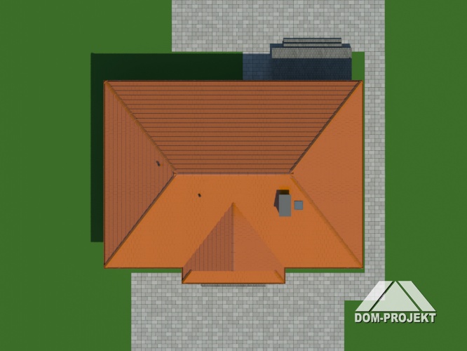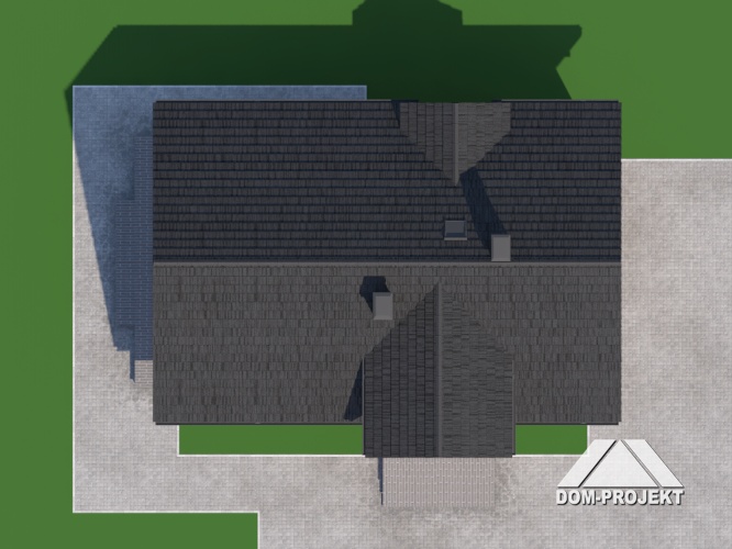 Dom jednorodzinny z użytkowym poddaszem i dwustanowiskowym garażem. Na parterze zaprojektowano część dzienną i zaplecze z kotłownią i pomieszczeniem pomocniczym. na poddaszu znajdują się trzy sypialnie, łazienka oraz garderoba. Ściany: 2-warstwowe - pustak ceramiczny + styropian, Stropy: żelbetowe, wylewane, Dach: dachówka ceramiczna, kąt nachylenia 40°