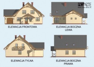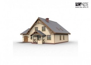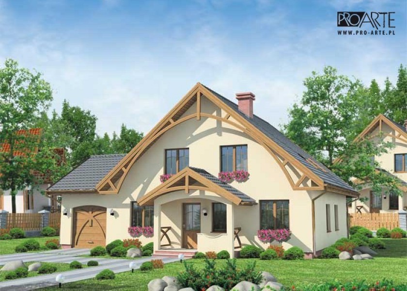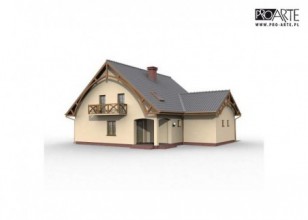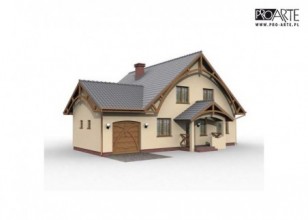 Ten dom od pierwszego spotkania budzi zaufanie: wygląda okazale, dostatnio i swojsko, a co najważniejsze kojarzy się z ciepłą rodzinną atmosferą. Od frontu zdobią go efektowne duże okna i mały ganeczek, którego zadaszenie jest miniaturą solidnego dwuspadowego dachu. Proporcjonalna bryła, miękkie linie łagodnych łuków w drewnianych elementach wykończeniowych i pastelowa barwa elewacji dodatkowo podkreślają spokój, jakim emanuje ten dom. We wnętrzu jest wszystko, co potrzebne, by żyć komfortowo i wygodnie: kuchnia z praktyczną spiżarnią i jasnym kącikiem jadalnym, obszerny pokój dzienny, łazienka oraz pomieszczenie bardzo potrzebne, choć często niedoceniane niewielki schowek na narzędzia, odkurzacze, szc