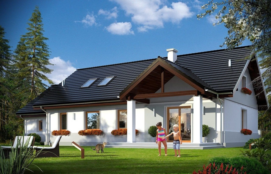 Prawdziwa „chatka”. Lubię ten projekt, bo ma charakter. Ciągle nie możemy wziąć się za budowę , ale jak się ogarniemy, to jest kandydat na naszą działkę ;)