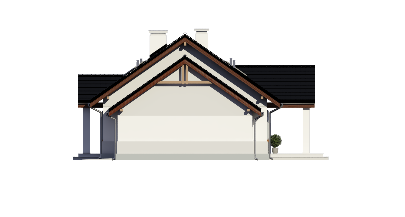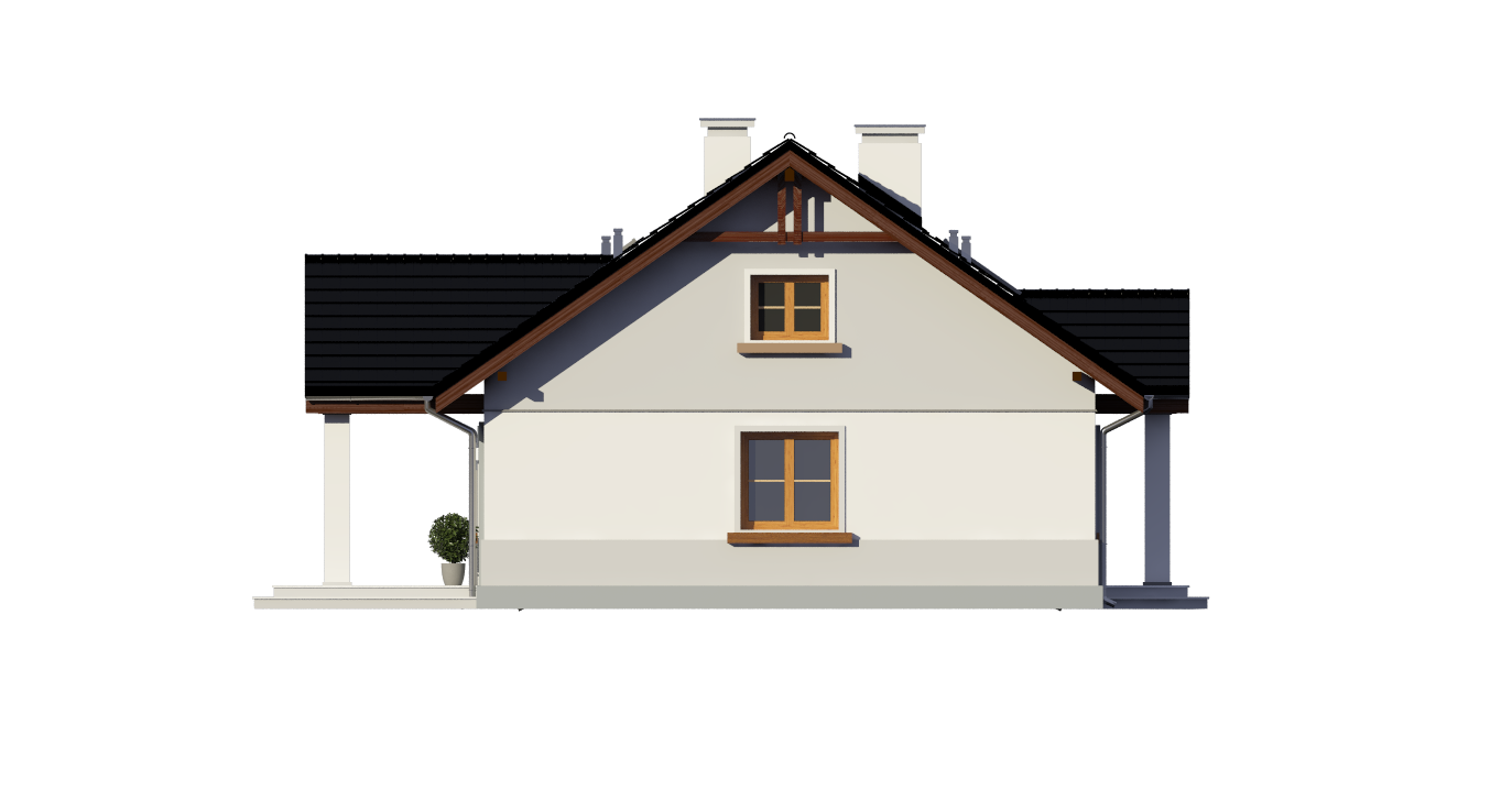 Wariant domku ze zmienionym układem pomieszczeń na parterze i zmienioną lokalizacją schodów na strych.
