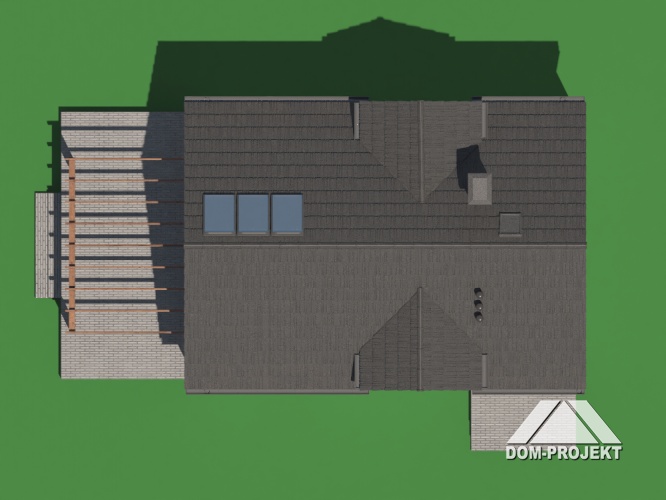 Dom w konstrukcji szkieletu drewnianego. Duży salon z kominkiem, wyjściem na taras i otwartą kuchnią. Nad częścią salonu antresola. Rozległy zadaszony taras. Dwa pokoje, łazienka, schody, wiatrołap i spiżarka. Na poddaszu dalsze trzy pokoje, łazienka, komunikacja i balkon nad częścią salonu. Architektura zewnętrzna domu nawiązuje do tradycji polskich dworów ziemiańskich.