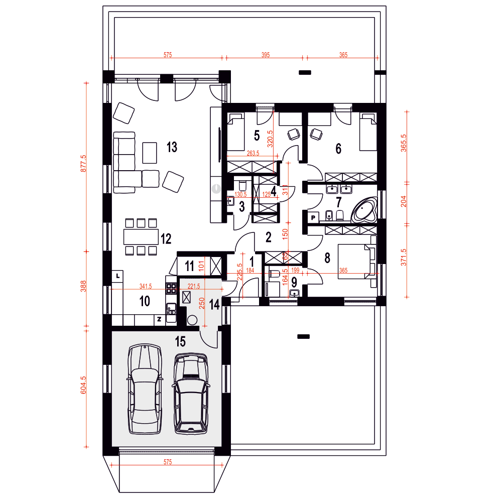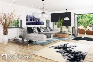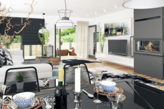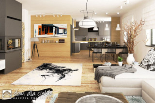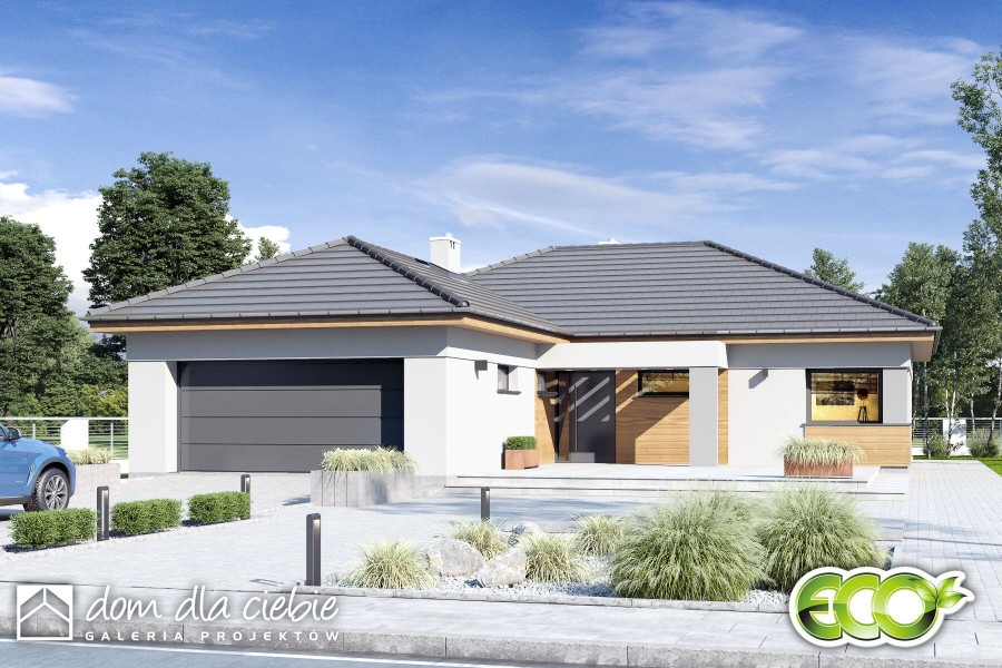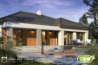 Projekt Cyrus III to propozycja nowoczesnego domu parterowego - to inna wersja popularnego projektu Cyrus, z naszej kolekcji. Cyrus III posiada modne i ciekawe wykończenia elewacji w drewnie i w klinkierze, o ciepłych kolorach. Projekt zaprojektowany został dla 4-osobowej rodziny. Ten wygodny dom posiada przestronny pokój dzienny z kominkiem i "szklaną ścianą" z możliwością wyjścia na ogród, który sąsiaduje z otwartą wygodną kuchnią oraz jadalnią gdzie z powodzeniem zmieści się duży rodzinny stół jadalny. Przy kuchni zaprojektowano wygodną spiżarnię na zapasy.Poprzez funkcjonalny podział pomieszczeń domu na strefy dzienną i nocną zapewnia, całej rodzinie została zapewniona wygoda o poczucie komfortu. W kolejnej części domu, strefie prywatnej, przewidziano trzy wygodne sypialnie, garderobę i dwie łazienki. Jedna z nich dostępna jest z dwuosobowej sypialni. W projekcie - na poddaszu, zaprojektowano miejsce do celów magazynowych. Projekt Cyrus III wyposażony został w przybudowany garaż na dwa samochody, znajdziemy w nim sporo miejsca na rowery, czy kosiarkę. Mały kąt nachylenia dachu podkreśla elegancki i efektowny charakter domu. Nowoczesne podcienie z modnymi ramami na elewacji, podkreślają elegancki wygląd domu.fundamenty: BETONOWE ściany zewnętrzne: PUSTAK CERAM. POROTHERM+STYROPIAN TERMO ORGANIKA ściany wewnętrzne: POROTHERM / CEGŁ.DZIURAWKA rodzaj stropu: TERIVA elewacje: TYNK STRUKTURALNY pokrycie dachu: DACHÓWKA CEM. lub CER.