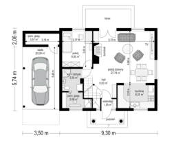 Projekt domu Bajkowy to propozycja dla 4- 5-osobowej rodziny. Domek jest nieduży, ale spełnia wszystkie funkcje, którymi powinien charakteryzować się prawdziwy dom. Na parterze domu Bajkowy zaprojektowany został dodatkowy pokój, mogący spełniać funkcję gabinetu, sypialni babci lub pokoju gościnnego. Wiata opcjonalnie może być garażem. Zapraszamy do zapoznania się z pełną ofertą pracowni MG Projekt: podstawowy projekt domu Bajkowy, z podwójnym garażem, poszerzona wersja z garażem projekt domu Bajkowy 2, komfortowa wersja projekt domu Bajkowy 3, oraz odbicie lustrzane projektu.