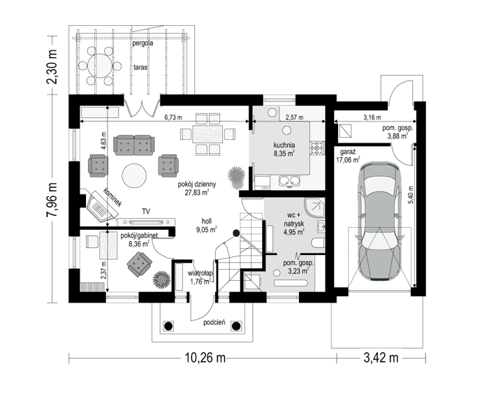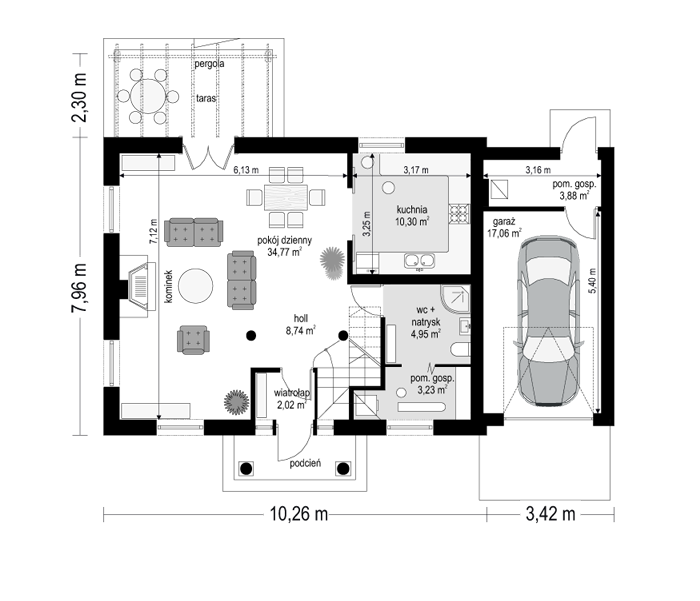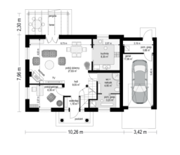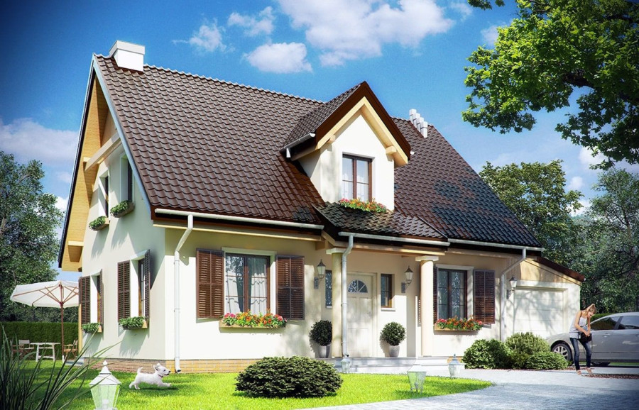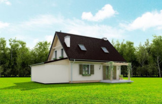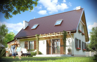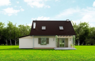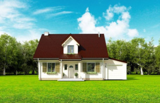 Projekt domu Bajkowy 3 to najnowsza wersja projektu z serii Bajkowych. Ten uroczy domek jednorodzinny przeznaczony jest do całorocznego zamieszkania dla czterech-pięciu osób. Jego prostokątny rzut zamyka dwuspadowy prosty dach nad poddaszem użytkowym, a dobudowany garaż z jednospadowym dachem dopełnia bryłę. Domek nawiązuje stylistyką do wiejskich regionalnych chałup i do tradycji polskiego dworku. Centralnie usytuowany ganek wejściowy wsparty kolumienkami, oraz symetryczne okna po bokach tworzą ładną, spokojną elewację frontową. Dom ma dobrze zachowane proporcje - jest lekki i ma ludzką skalę. Doskonale sprawdzi się zarówno na podmiejskiej działce budowlanej, jak i wśród wiejskiej zabudowy - jako dom wakacyjny. Bajkowy 3 ma prostą konstrukcję - będzie łatwy i niedrogi w budowie. Dzięki zwartej bryle dom będzie również energooszczędny, przez co niedrogi w utrzymaniu. Wnętrze Bajkowego 3 można zamówić w dwóch wariantach: w wariancie podstawowym na parterze mamy duży salon z centralnym kominkiem, kuchnię, łazienkę z pomieszczeniem gospodarczym (pralnia – schowek), oraz garaż i kotłownię. W Wariancie „B” projektu zaprojektowano dodatkowy pokój (gabinet lub sypialnia gościnna) przy wejściu do domu. Na poddaszu mieszczą się trzy sypialnie i łazienka. Kotłownia może być na paliwo stałe lub gazowa. Zapraszamy do zapoznania się z pełną ofertą pracowni MG Projekt: podstawowy projekt domu Bajkowy, z podwójnym garażem, poszerzona wersja z garażem projekt domu Bajkowy 2, komfortowa wersja projekt domu Bajkowy 3, oraz odbicie lustrzane projektu.