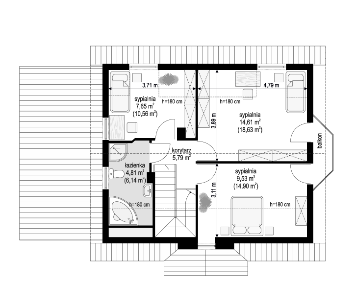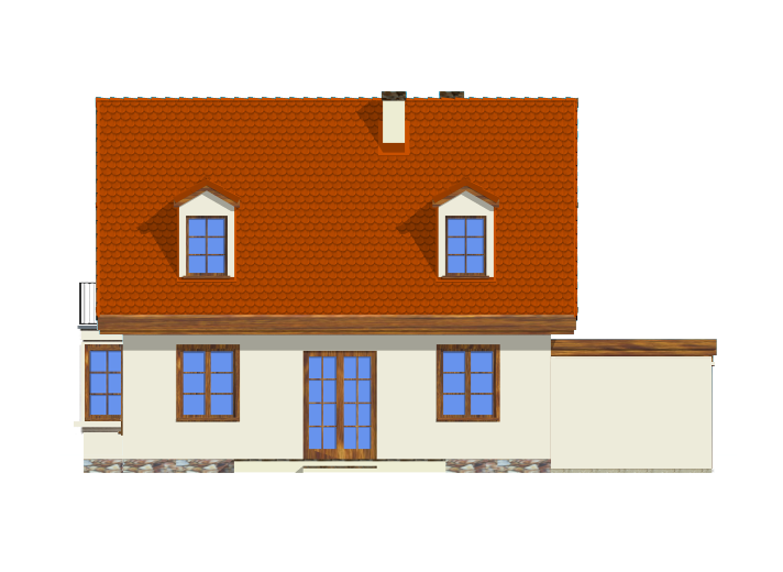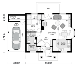 Wariant z wiatą garażową, wykuszem jadalni między kuchnią i salonem, z balkonikiem nad wykuszem na poddaszu. Zapraszamy do zapoznania się z pełną ofertą pracowni MG Projekt: podstawowy projekt domu Bajkowy, z podwójnym garażem, poszerzona wersja z garażem projekt domu Bajkowy 2, komfortowa wersja projekt domu Bajkowy 3, oraz odbicie lustrzane projektu.