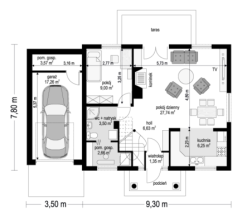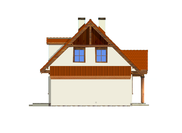 Wariant z zabudowaną wiatą garażową na garaż, ze zmienionym dachem nad garażem z pulpitowego na jednospadowy. Zapraszamy do zapoznania się z pełną ofertą pracowni MG Projekt: podstawowy projekt domu Bajkowy, z podwójnym garażem, poszerzona wersja z garażem projekt domu Bajkowy 2, komfortowa wersja projekt domu Bajkowy 3, oraz odbicie lustrzane projektu.