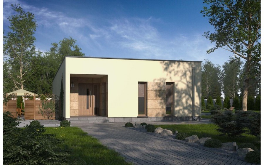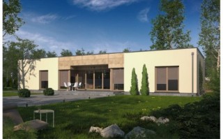 Dom D114C to przykład nowoczesnej parterowej willi miejskiej z możliwością zbliźniaczenia. Prosta, czysta bryła oraz harmonijny podział w elewacjach czynią ten dom prostym i eleganckim. Dzięki temu koszty poniesione na budowę zostały mocno zredukowane. Dodatkowym założeniem przyjętym przy projekcie budynku było harmonijne wpisanie się zarówno w naturalny krajobraz jak również w krajobraz miejski. Jest to budynek parterowy kryty dwuspadowym dachem. W elewacji budynku poprzez materiał zaakcentowano wyraźnie, strefę wejściową. W bryle budynku oddzielono także funkcję mieszkalną dzienną od nocnej, jak również strefę mieszkalną od strefy gospodarczej. Budynek można zbliźniaczyć. Cena dotyczy jednej połowy bliźniaka.