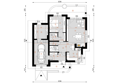 Dom D132 jest odpowiedzią na potrzeby naszych klientów, szukających nowoczesnej willi miejskiej z garażem. Prosta, czysta bryła oraz harmonijny podział w elewacjach czynią ten dom klasycznie eleganckim.