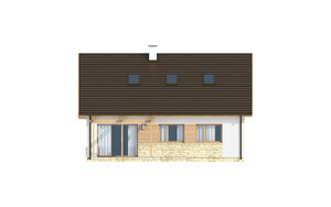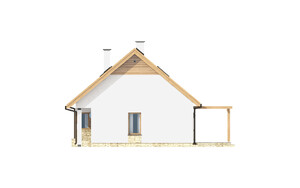 Podstawowym założeniem przyjętym przy projekcie budynku było stworzenie funkcjonalnego i ciekawego wnętrza na niewielkim metrażu. Jest to budynek parterowy kryty dwuspadowym dachem z możliwością adaptacji poddasza. W elewacji budynku poprzez materiał zaakcentowano wyraźnie, strefę wejściową. W bryle budynku oddzielono także funkcję mieszkalną dzienną od nocnej, jak również strefę mieszkalną i strefy gospodarczej.