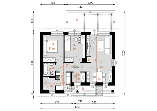 Dom D137A jest skierowany do naszych klientów, szukających niewielkiego, nowoczesnego domu parterowego. Prosta, czysta bryła oraz harmonijny podział w elewacjach czynią ten dom klasycznie eleganckim.