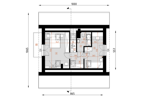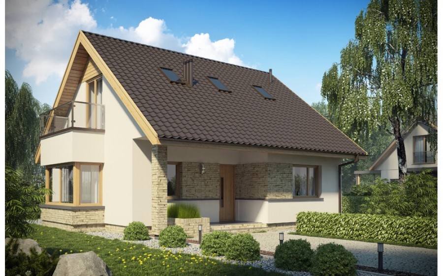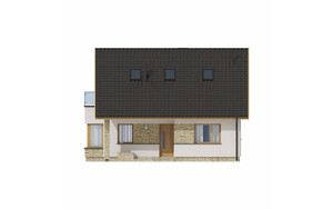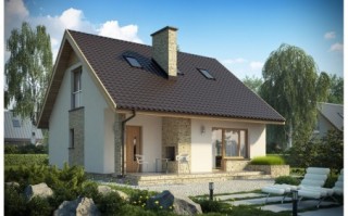 Dom D144C jest skierowany do naszych klientów, szukających niewielkiego, nowoczesnego domu parterowego z poddaszem. Prosta, czysta bryła oraz harmonijny podział w elewacjach czynią ten dom klasycznie eleganckim.Podstawowym założeniem przyjętym przy projekcie budynku było stworzenie funkcjonalnego i ciekawego wnętrza na niewielkim metrażu. W elewacji budynku poprzez materiał zaakcentowano wyraźnie, strefę wejściową. W bryle budynku oddzielono także funkcję mieszkalną dzienną od nocnej, jak również strefę mieszkalną od strefy gospodarczej. D144C jest też idealną propozycją na dom letniskowy.