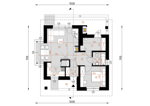 Podstawowym założeniem przyjętym przy projekcie budynku było stworzenie funkcjonalnego i ciekawego wnętrza na niewielkim metrażu. W elewacji budynku poprzez materiał zaakcentowano wyraźnie, strefę wejściową. W bryle budynku oddzielono także funkcję mieszkalną dzienną od nocnej, jak również strefę mieszkalną od strefy gospodarczej. D144C WT2021 jest też idealną propozycją na dom letniskowy.