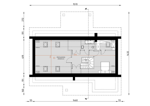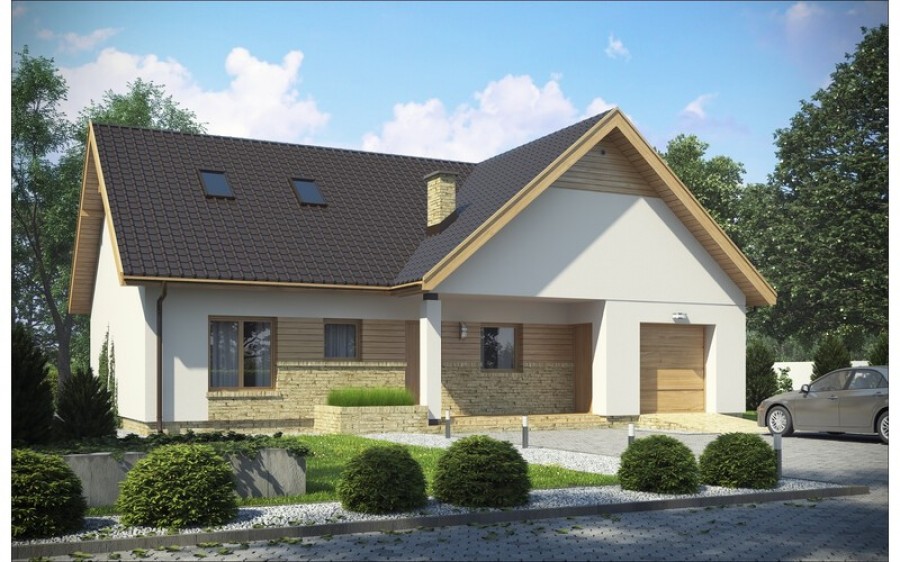 Dom D147 jest skierowany do naszych klientów, szukających niewielkiego, nowoczesnego domu parterowego z poddaszem do adaptacji i garażem. Prosta, czysta bryła oraz harmonijny podział w elewacjach czynią ten dom klasycznie eleganckim.Podstawowym założeniem przyjętym przy projekcie budynku było stworzenie funkcjonalnego i ciekawego wnętrza na niewielkim metrażu. Jest to budynek z poddaszem użytkowym, kryty dwuspadowym dachem. W elewacji budynku poprzez materiał zaakcentowano wyraźnie, strefę wejściową. W bryle budynku oddzielono także funkcję mieszkalną dzienną od nocnej, jak również strefę mieszkalną i strefy gospodarczej z dużą kotłownią.