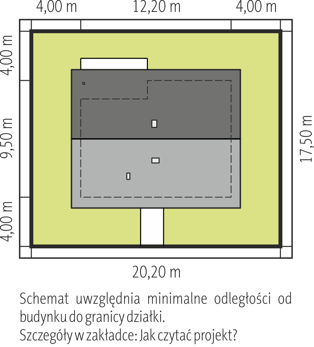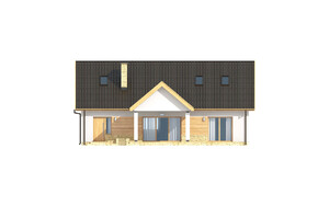 Podstawowym założeniem przyjętym przy projekcie budynku było stworzenie funkcjonalnego i ciekawego wnętrza na niewielkim metrażu. Jest to budynek z poddaszem użytkowym, kryty dwuspadowym dachem. W elewacji budynku poprzez materiał zaakcentowano wyraźnie, strefę wejściową. W bryle budynku oddzielono także funkcję mieszkalną dzienną od nocnej, jak również strefę mieszkalną i strefy gospodarczej z dużą kotłownią.