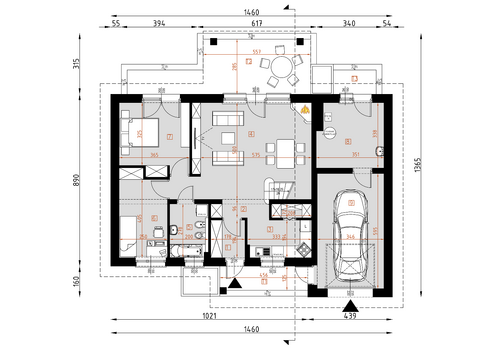 Dom D147 jest skierowany do naszych klientów, szukających niewielkiego, nowoczesnego domu parterowego z poddaszem do adaptacji i garażem. Prosta, czysta bryła oraz harmonijny podział w elewacjach czynią ten dom klasycznie eleganckim.