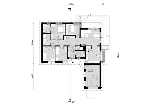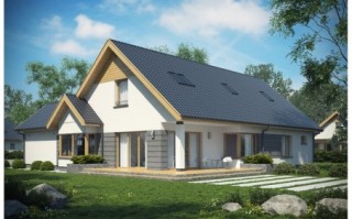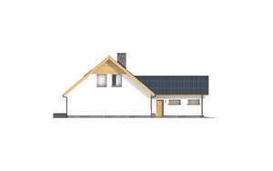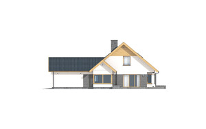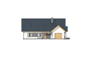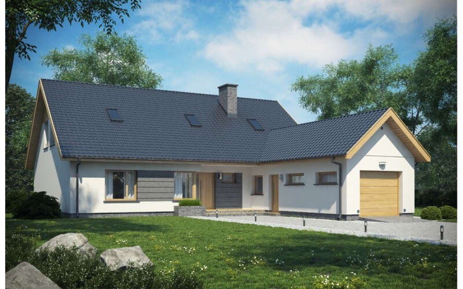 Dom jednorodzinny parterowy z poddaszem do adaptacji i garażem, niepodpiwniczony. Idealny dla 4-6 osobowej rodziny. Ciekawa, nowoczesna bryła budynku oraz kolorystyka są dużym atutem tego domu. Duży taras oraz wykusz dopełniają całości. Dal zmotoryzowanych członków rodziny zaprojektowana wygodny, jednostanowiskowy garaż. Bardzo funkcjonalny podział pomieszczeń z oddzielną strefą techniczną.