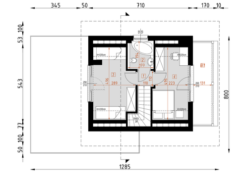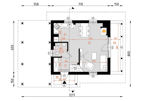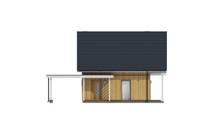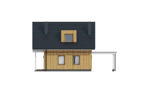 Dom mieszkalny jednorodzinny w technologii tradycyjnej. Idealny dla 4-5-osobowej rodziny.Może również pełnić funkcję domku letniskowego. Prosta bryła budynku oraz nieskomplikowana konstrukcja wpływają na niższe koszty budowy.Miejsce parkingowe w postaci wiaty, zaprojektowano obok budynku. Bardzo funkcjonalny podział pomieszczeń z oddzielną strefą techniczną, strefą dzienną na parterze i nocną na poddaszu.