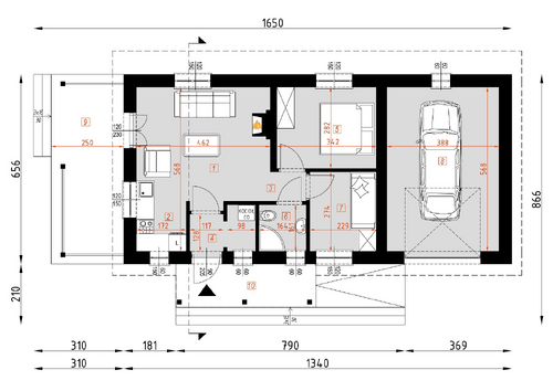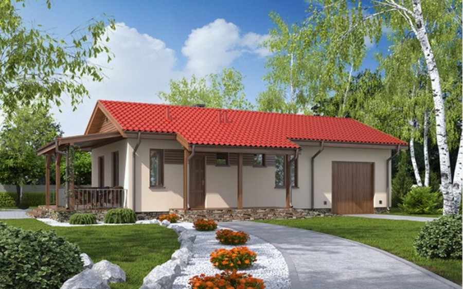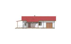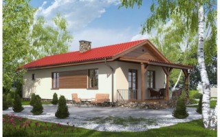 Prezentowany dom jest jednym z najtańszych w budowie i eksploatacji. Przeznaczony jest dla trzyosobowej rodziny. Może też pełnić funkcję wygodnego domu letniego. Szeroki okap dachu chroni taras przed zbytnim nasłonecznieniem jak również umożliwia korzystanie z niego podczas deszczu. Dom posiada wygodny układ funkcjonalny z podziałem na część dzienną obejmującą kuchnię, i pokój dzienny oraz część nocną z pokojami sypialnymi i łazienką. Możliwe jest oddzielenie kuchni od pokoju dziennego.