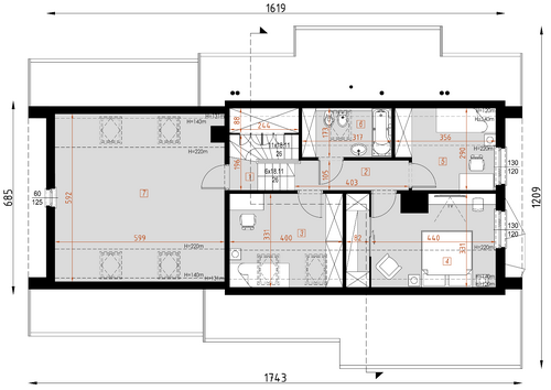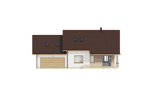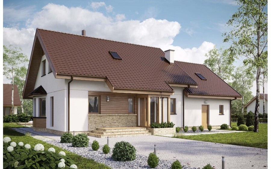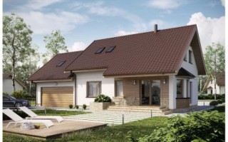 D213 to dom mieszkalny jednorodzinny z poddaszem użytkowym. Idealny dla 4-5-osobowej rodziny. Może również pełnić funkcję domku letniskowego. Prosta bryła budynku oraz nieskomplikowana konstrukcja wpływają na niższe koszty budowy. Bardzo funkcjonalny podział pomieszczeń z oddzielną strefą techniczną, strefą dzienną na parterze i nocną na poddaszu. Nad garażem zostało wydzielony strych.