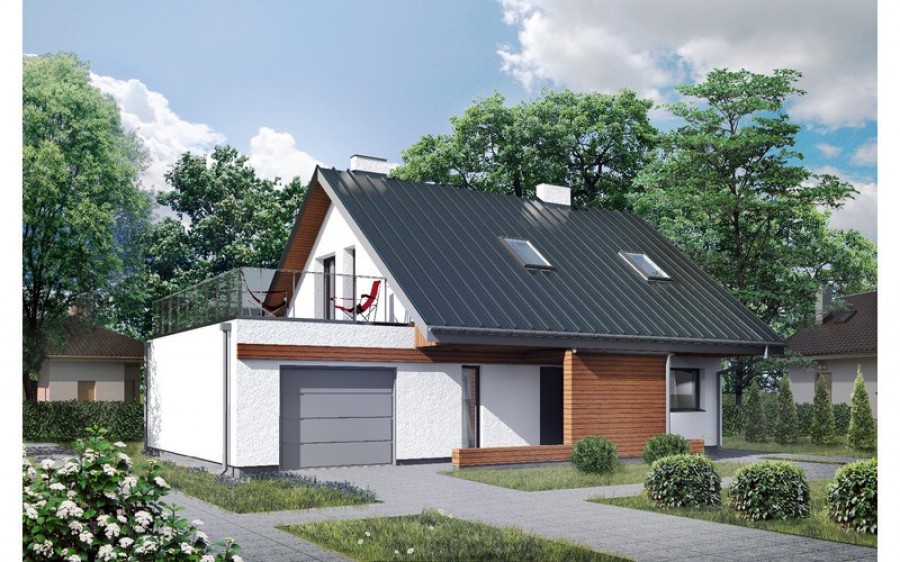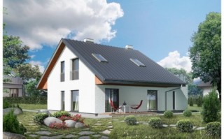 Nowoczesny dom z poddaszem użytkowym. Idealny dla 3-4 osobowej rodziny. Wnętrzej jest niezwykle funkcjonalne i przytulne.