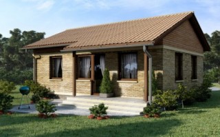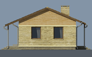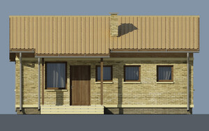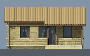 Prezentowany dom jest jednym z najtańszych w budowie i eksploatacji. Przeznaczony jest dla czteroosobowej rodziny. Może też pełnić funkcję wygodnego domu letniego. Szeroki okap dachu chroni taras przed zbytnim nasłonecznieniem jak również umożliwia korzystanie z niego podczas deszczu. Dom posiada wygodny układ funkcjonalny składa się z kuchni i pokoju dziennego oraz pokoi sypialnych i łazienki. Od strony sypialni możliwa jest dobudowa garażu lub wiaty na samochód. Możliwe jest ogrzewanie domu kominkiem w oparciu o system kanałów rozprowadzających ciepłe powietrze i centrali rozdzielczej.