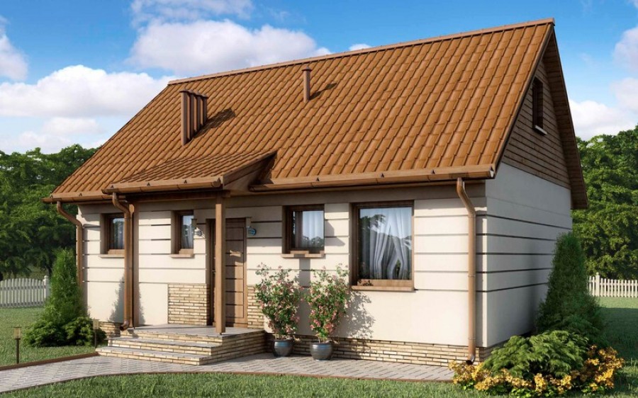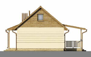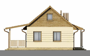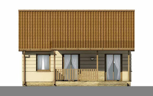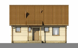 Dom mieszkalny jednorodzinny, wolno stojący, z poddaszem, nie podpiwniczony. Z zadaszonym tarasem. Po wejściu do domu, poprzez małą sień, w której umieszczone jest również wejście do pomieszczenia technicznego, dostajemy się do hallu, z niego zaś dostępne są wszystkie inne pomieszczenia: trzy pokoje, łazienka, kuchnia i aneks jadalny. W domu występuje wyraźny podział na strefę dzienna i nocną. Na poddasze dostać się możemy po składanych schodach umieszczonych w pomieszczeniu jadalnianym