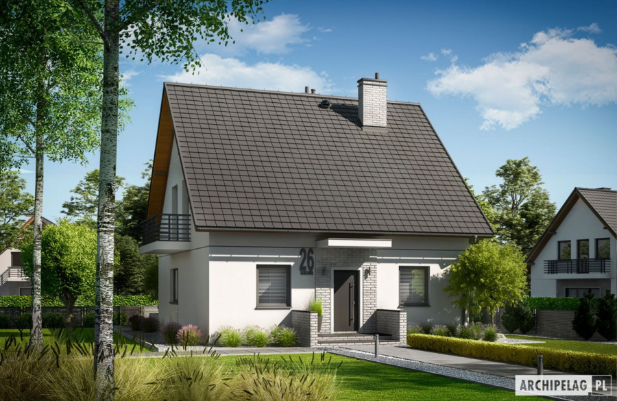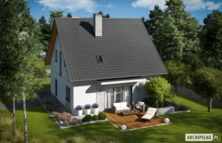 Charakterystyka: Dom parterowy z poddaszem użytkowym, niepodpiwniczonyPrzeznaczenie: Dom dla 3-5-osobowej rodziny Technologia i konstrukcja:Ściany zewnętrzne: murowane, dwuwarstwowe, beton komórkowy firmy H+H 24 cm, ocieplenie styropian Termo Organika 20 cmŚciany wewnętrzne: nośne i działowe murowane, beton komórkowy firmy H+H 18 cm i 12 cmStrop: międzypiętrowy gęstożebrowy TerivaDach: konstrukcja drewniana, ocieplenie wełna mineralna Isover 30 cm, dachówka ceramiczna płaska Bergamo firmy RöbenInne: schody wewnętrzne drewniane Rozwiązania instalacyjne:Ogrzewanie: kocioł gazowy kondensacyjny firmy Viessmann, rozprowadzenie ciepła: grzejniki firmy PurmoWentylacja: grawitacyjna Wykończenie:Elewacje: tynk cienkowarstwowy mineralny w kolorze białym TO-PA001 z palety firmy Termo Organika, okładzina klinkierowa typ AARCHUS lub CALAIS firmy RöbenStolarka: drewniana, PVC lub aluminiowa, rolety zewnętrzne w systemie CleverBox firmy BeClever, drzwi wejściowe firmy HörmannOkna połaciowe: wyłaz dachowy i świetlik dachowy firmy VELUXPobierz ekspercki poradnik VELUX i dowiedz się jak wybrać okna dachowe Otoczenie: płyty tarasowe firmy Libet, system tarasowy ProDeck - deska kompozytowa Terra w kolorze orzech Wersje - zapytaj o dostępność:- Dagna - z garażem jedno- lub dwustanowiskowym- odbicie lustrzane do każdej wersji Istnieje techniczna możliwość:- podpiwniczenia budynku- wykonania budynku w technologii szkieletowej Wariant działki dla wersji domu z garażem jedno i dwustanowiskowym: